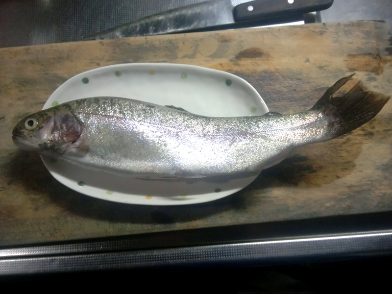 普段お店で買うようなニジマスは20センチそこそこなので、